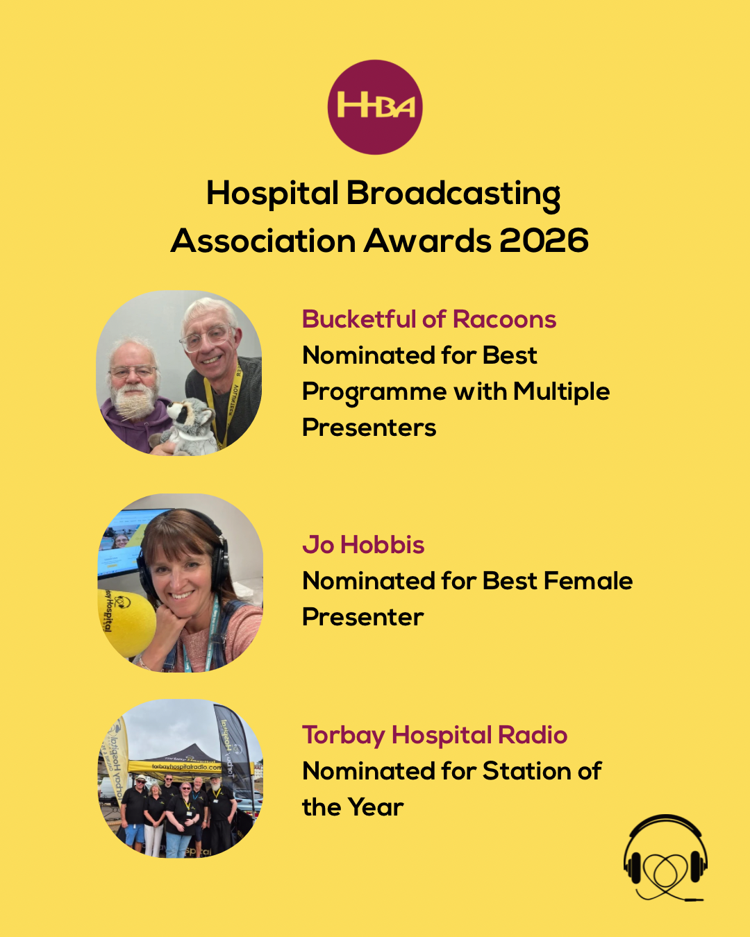 We’re delighted to announce that we’ve received three nominations this year for the Hospital Broadcasting Association Awards (taking place in March 2026).